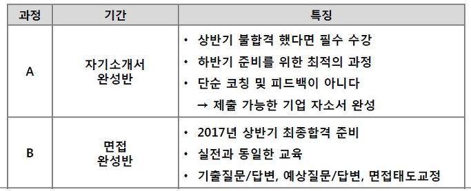 실전과 동일한 교육을 기반으로 다양한 자기소개서 작성과