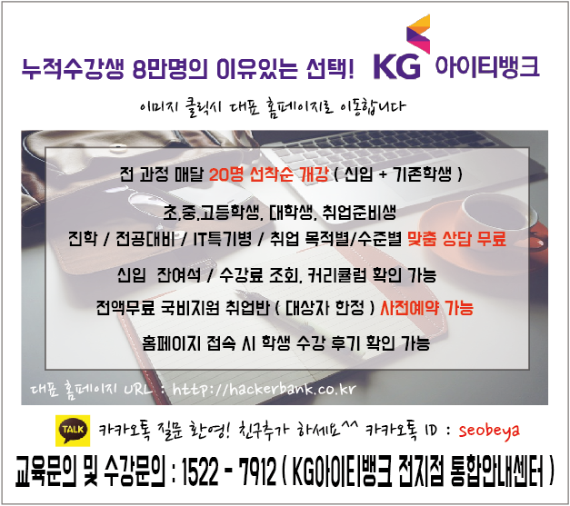 안녕하세요 KG아이티뱅크교육기관입니다.
