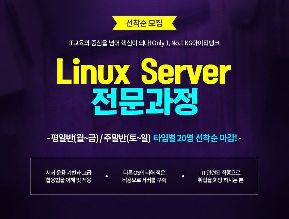 고민이신분들이라면 KG아이티뱅크 리눅스교육받아보세요.
