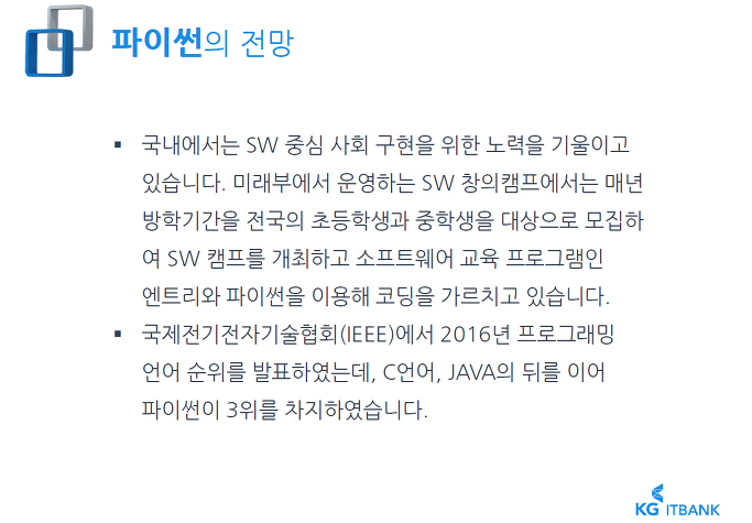 파이썬은 해외 IT회사에서 많이~ 사용하는