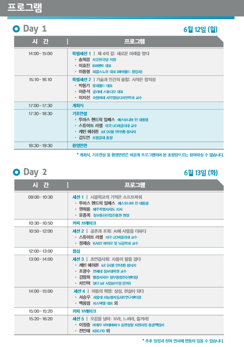 등 국내외 ‘4차 산업혁명’을 선도하는 저명인사들이 연사!!