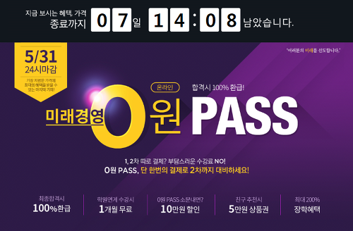 미래경영아카데미는 0원 PASS 상품은 수강기간이 1년 6개월 입니다!
