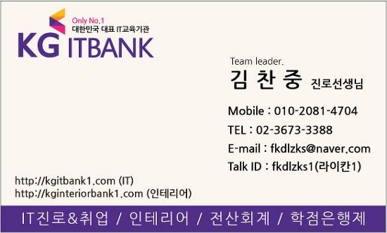 ★아래 명함 클릭하시면 KG아이티뱅크 홈페이지로 이동합니다.★