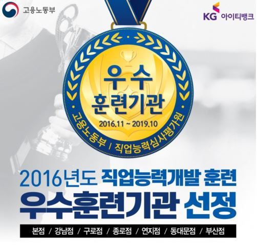고옹노동부 3년연속 우수훈련교육기관으로 선정된