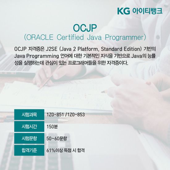 자바자격증 OCJP자격증을 취득이 가능합니다.