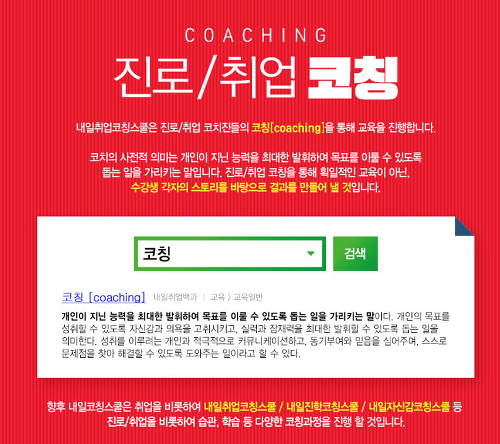 안녕하세요. 내일취업코칭스쿨 신팀장입니다.