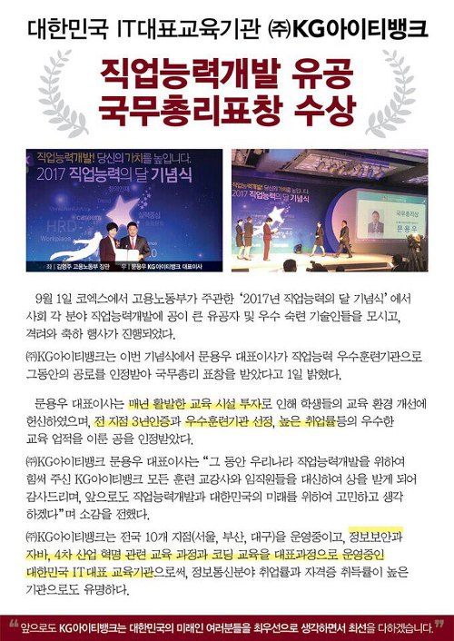 실제 취업알선까지 가능한 KG아이티뱅크!