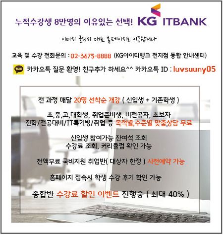 지금 KG아이티뱅크에서 1:1 교육상담받고