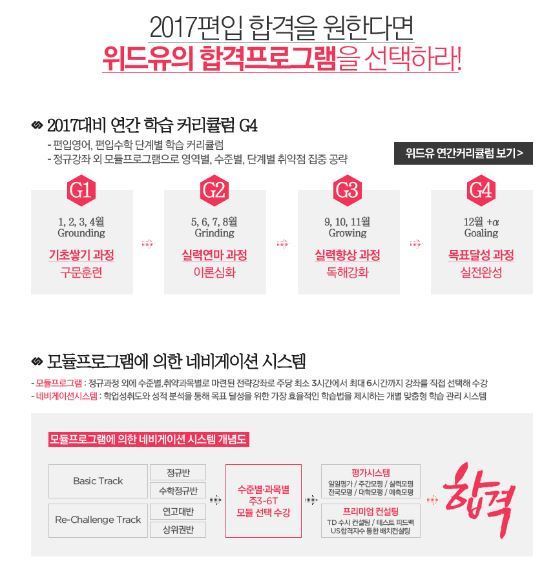 차별화된 교육과정으로 편입정보, 편입수학등에 대한 부분들을