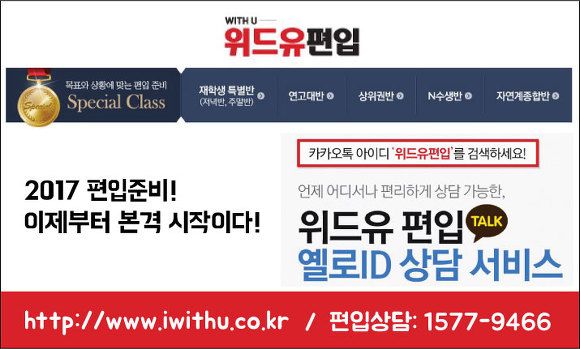 위드유편입학원은 스타교수님도 보유한 실력있는 학원입니다.