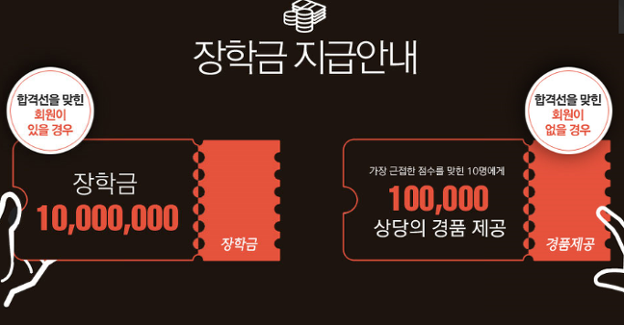 ○합격선을 맞힌 회원이 다수일 경우라면, 장학금 1/N하여 지급해드려요.