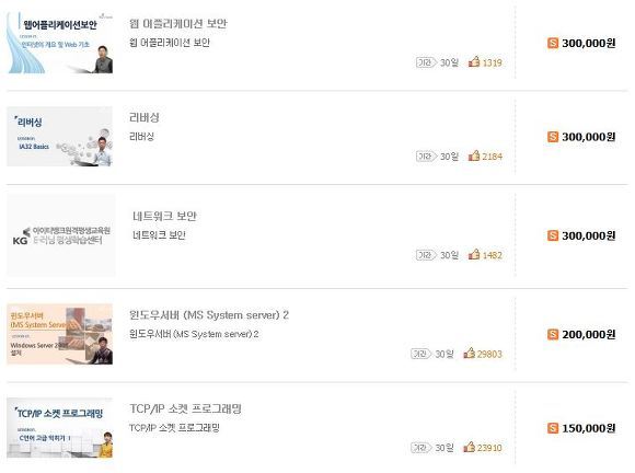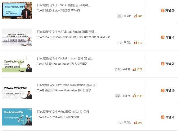 실무에 해당하는 교육강의들을 볼수가 있고