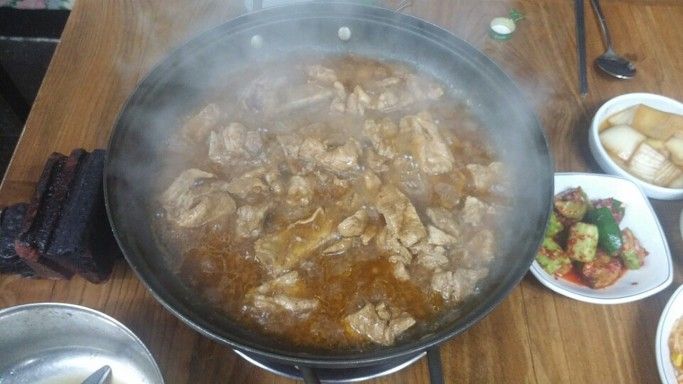 큰 솥에 끓여서 진한맛이 우러나구요~