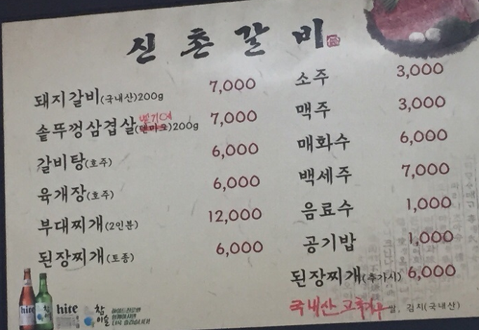 신촌갈비 착한가격의 자태입니다.