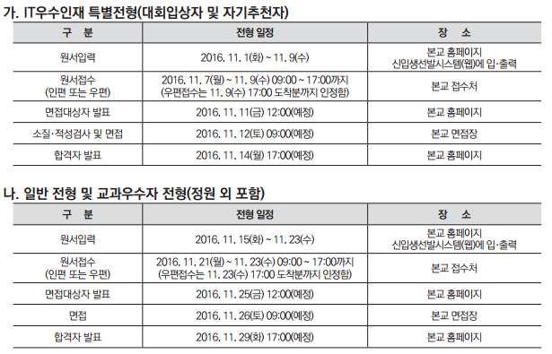 2016년 원서접수는 11월에 시작이 되었네요