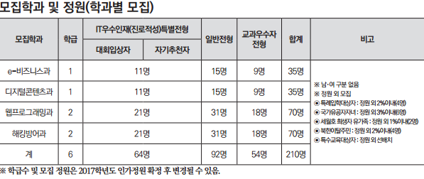 디지털미디어고등학교의 모집학과
